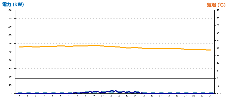 | 時刻 | 日射強度 (kW/㎡) | 気温 (℃) | 発電電力量 (kWh) | CO2削減量 (kg-CO2) | 売電金額(概算) (円) |