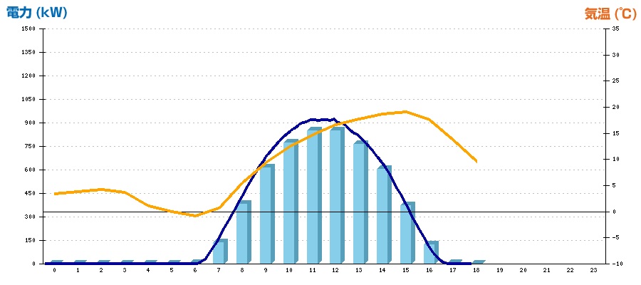| 時刻 | 日射強度 (kW/㎡) | 気温 (℃) | 発電電力量 (kWh) | CO2削減量 (kg-CO2) | 売電金額(概算) (円) |